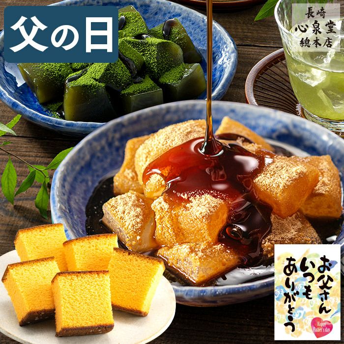 父の日ギフトなら長崎心泉堂にお任せ。本場老舗の長崎カステラや素材にこだわった和菓子の詰め合わせ、上質なスペシャルティコーヒーなど、お父さんが喜ぶ贈り物をご用意しています。