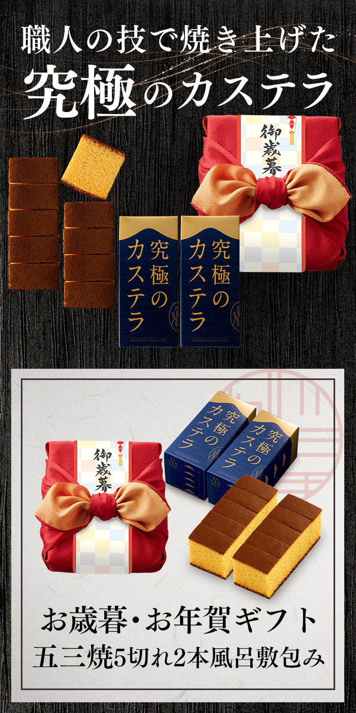 内容 五三焼カステラ0.3号2本 風呂敷包み
