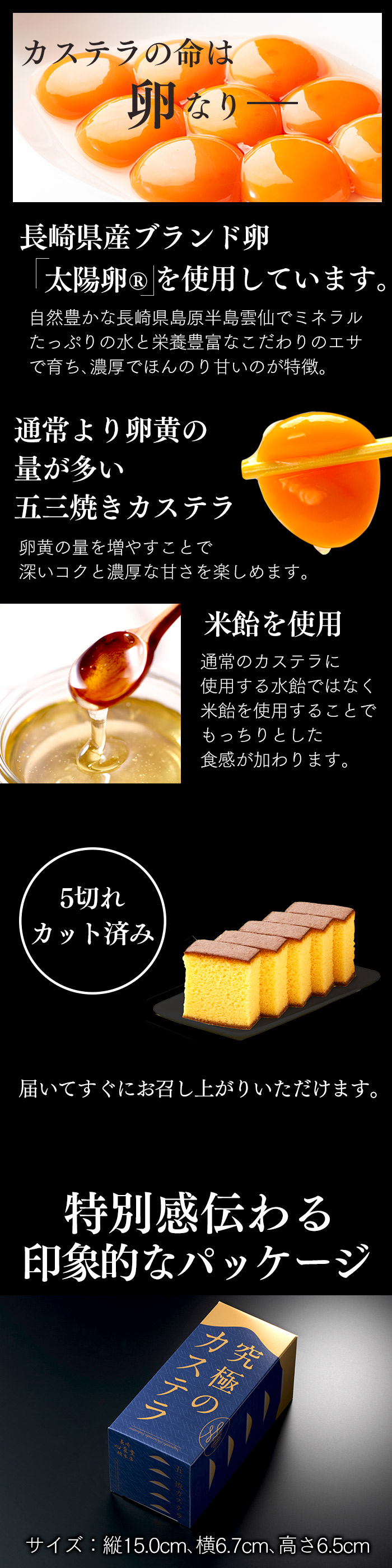 原材料 鶏卵(国産)、砂糖、小麦粉、米飴、ザラメ糖、蜂蜜、(一部に卵・小麦を含む)