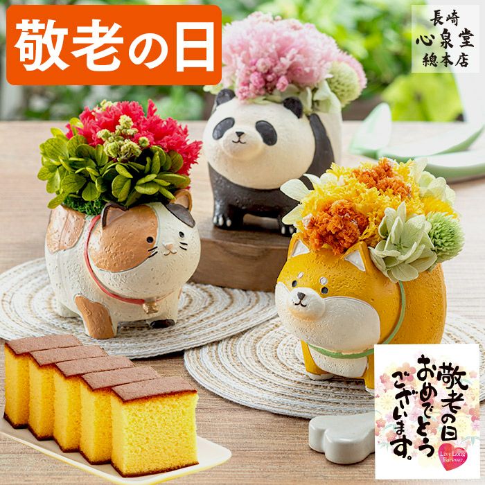 敬老の日ギフト まるっとした動物プリザとカステラ KR1H