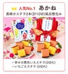 鶏卵(国産)、砂糖、小麦粉、水飴、ザラメ糖、蜂蜜、ストロベリー果汁、ブドウ糖果糖液糖/着色料(ラック)、酸味料、香料、(一部に卵・小麦を含む)