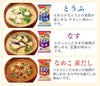 豆腐(国内製造)、米みそ、ねぎ、油揚げ、調合みそ、風味調味料、でん粉・デキストリン混合物、こんぶエキス、かつお節粉末、酵母エキスパウダー/調味料(アミノ酸等)、安定剤(加工デンプン)、凝固剤、酸化防止剤(ビタミンE)、酸味料、(一部にさば・大豆・魚醤(魚介類)を含む) 【かに汁】 米みそ(国内製造)、かに加工品(かに、食塩)、ゆでがに、ねぎ、還元水あめ、風味調味料、こんぶ、でん粉・デキストリン混合物、こんぶ粉末、おきあみエキス調味料、酵母エキスパウダー/調味料(アミノ酸等)、酸化防止剤(ビタミンE)、酸味料、(一部にかに・さば・大豆・魚醤(魚介類)を含む) 【海苔】 米みそ(国内製造)、ねぎ、風味調味料、焼きのり、焼きふ、でん粉、酵母エキスパウダー/調味料(アミノ酸等)、酸化防止剤(ビタミンE)、酸味料、(一部に小麦・さば・大豆・魚醤(魚介類)を含む)