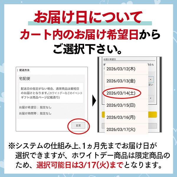 他の画像を見る ホワイトデー ショコラ・テラ 個包装8個 WD1D 価格 ¥ 3,240 税込 販売期間 2026/01/31 10:00 〜 2026/03/16 11:59 詳細を見る お気に入りに登録する